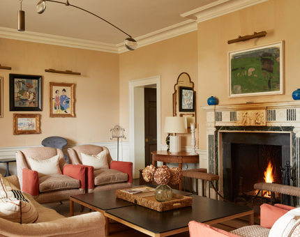 Libraries are always conducive to good thoughts. Ours is too, but it's also a comfortable and chic retreat and is particularly well-suited for small informal conversations. There is a working open fireplace and beautiful bay window looking onto the gardens beyond.