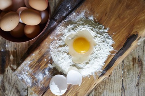 3. Form the dough: Gradually incorporate the flour into the eggs, mixing until a rough dough forms.