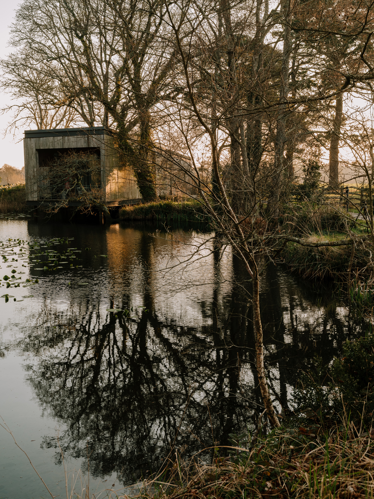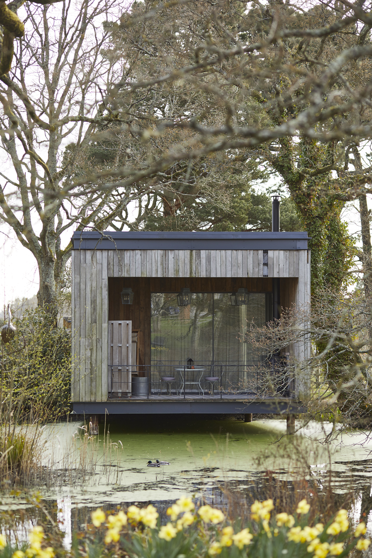 The Lake Cabin is definitely for romantics - with a living sedum roof, clad in reclaimed timber inside and out, the cabin is true to its name and is cantilevered out over the lake giving a sense of floating on water which surrounds its balcony overlooking the lake.
