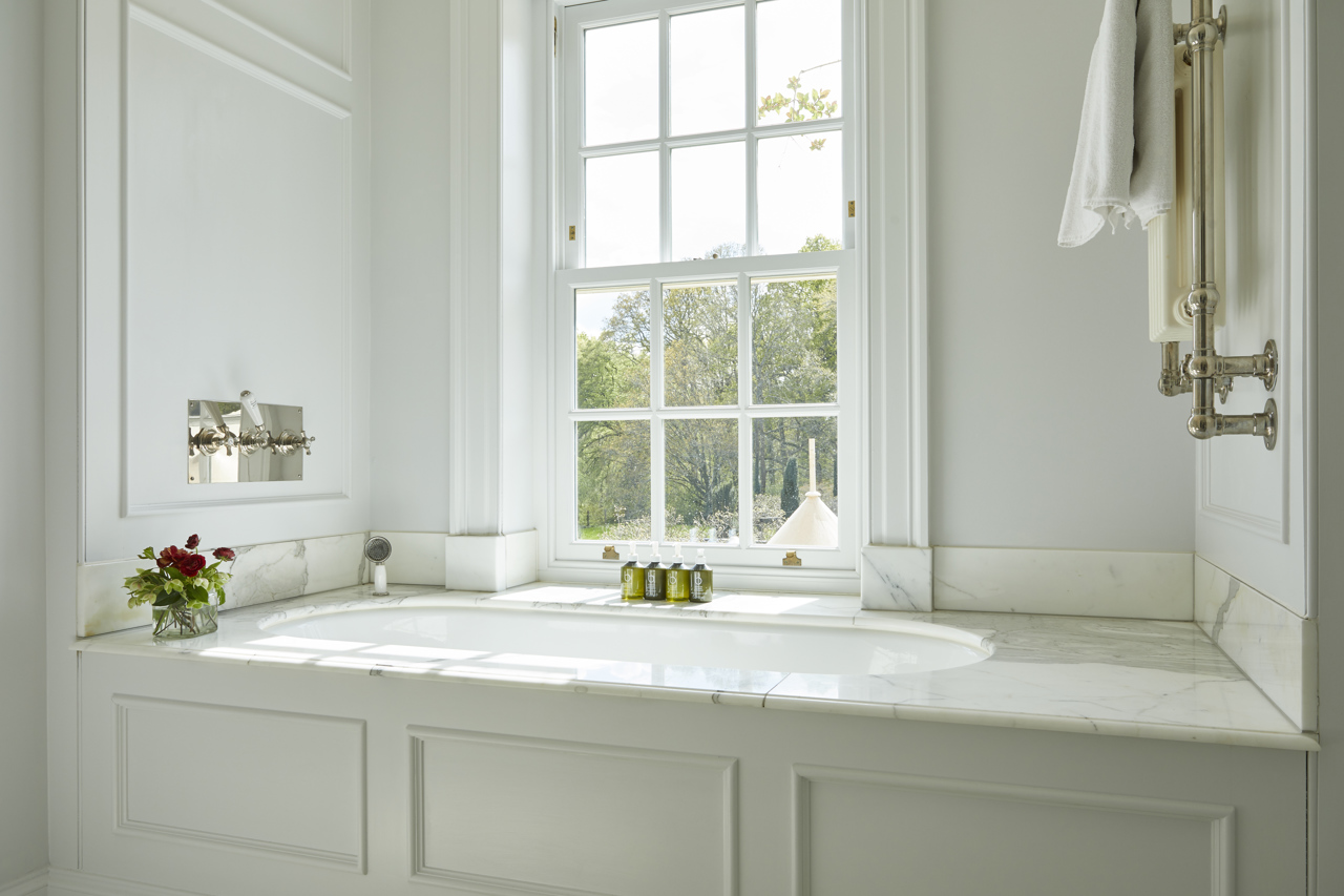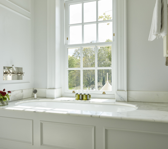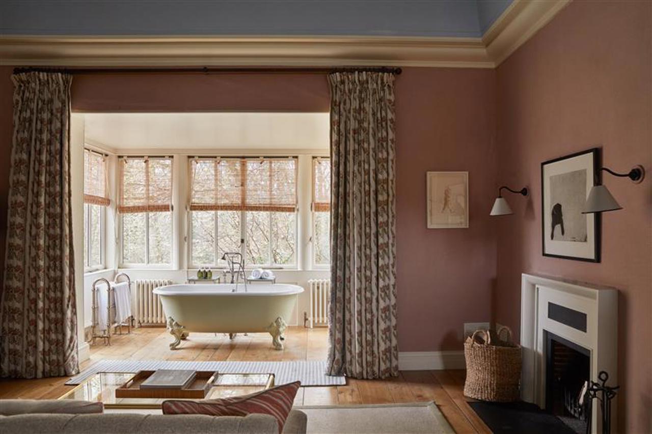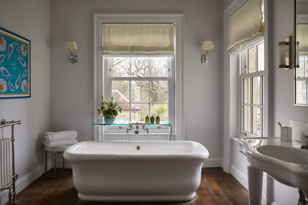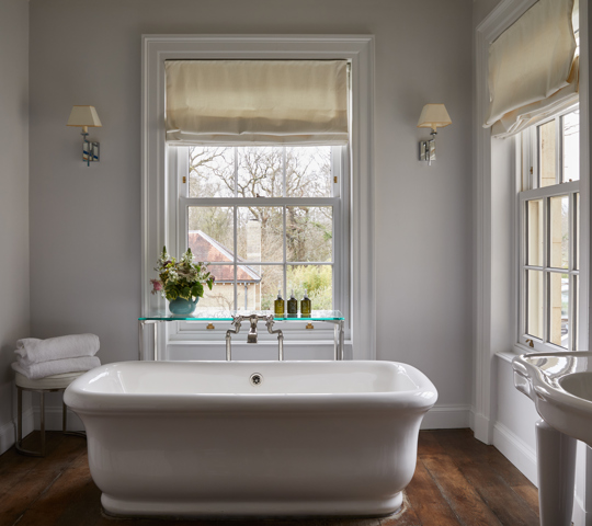 Our Main House Generous rooms are classic and luxurious in their design, with roll-top baths that look out onto the forest and beyond.