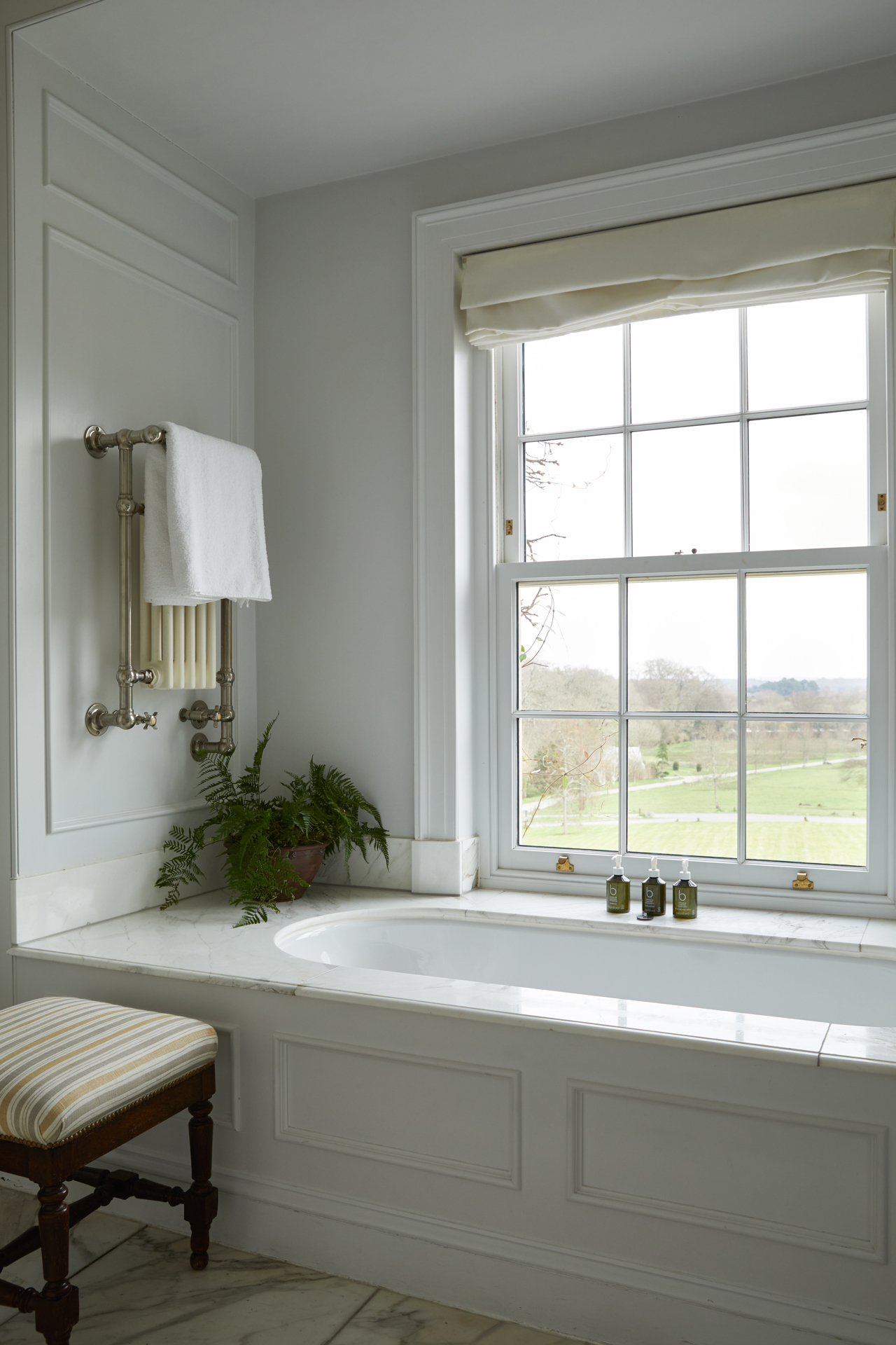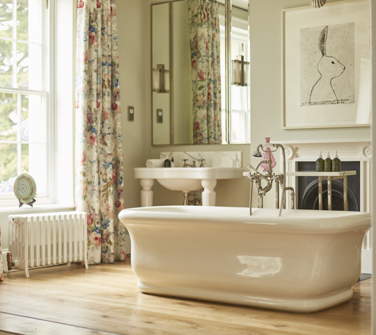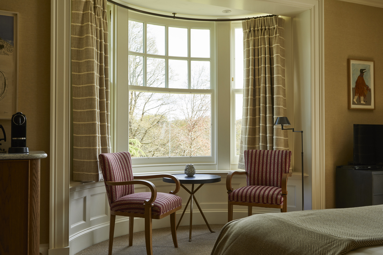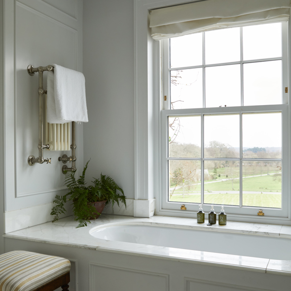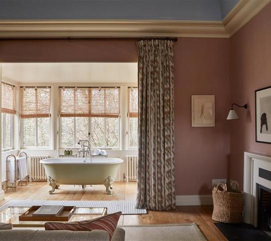 Our Main House Generous rooms are classic and luxurious in their design, with roll-top baths that look out onto the forest and beyond.