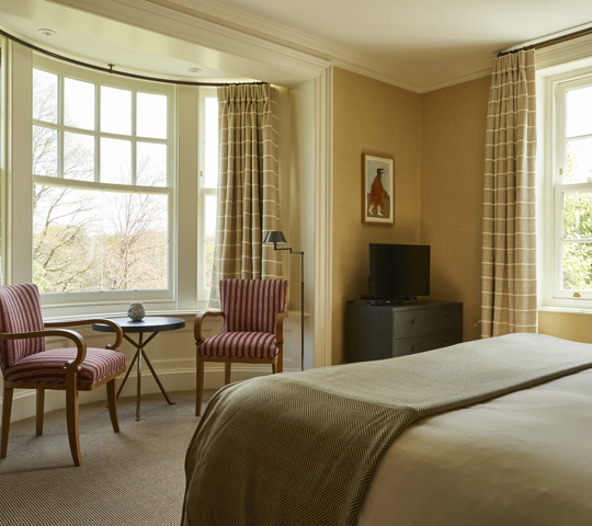 Based in the Main House and Crescent building, these rooms overlook the lawns, fields and the forest beyond. All of the rooms have super king-size beds and the Spacious Room in the Crescent even has an open fireplace! They all have very large and bright bathrooms with walk-in showers and large baths.
