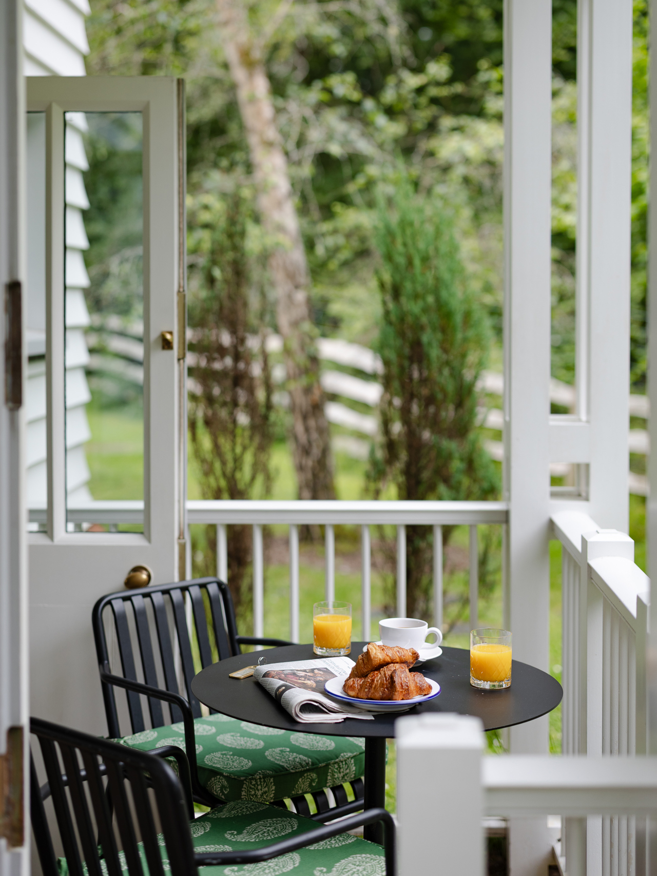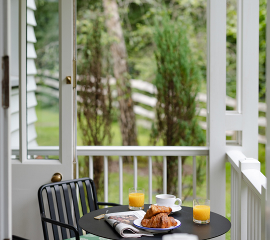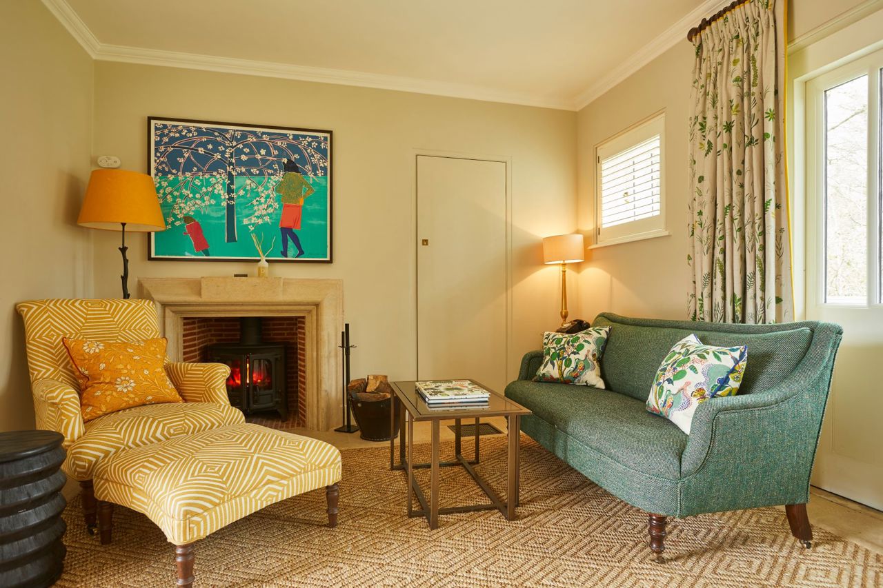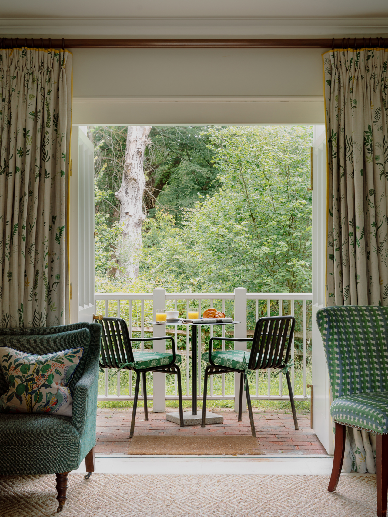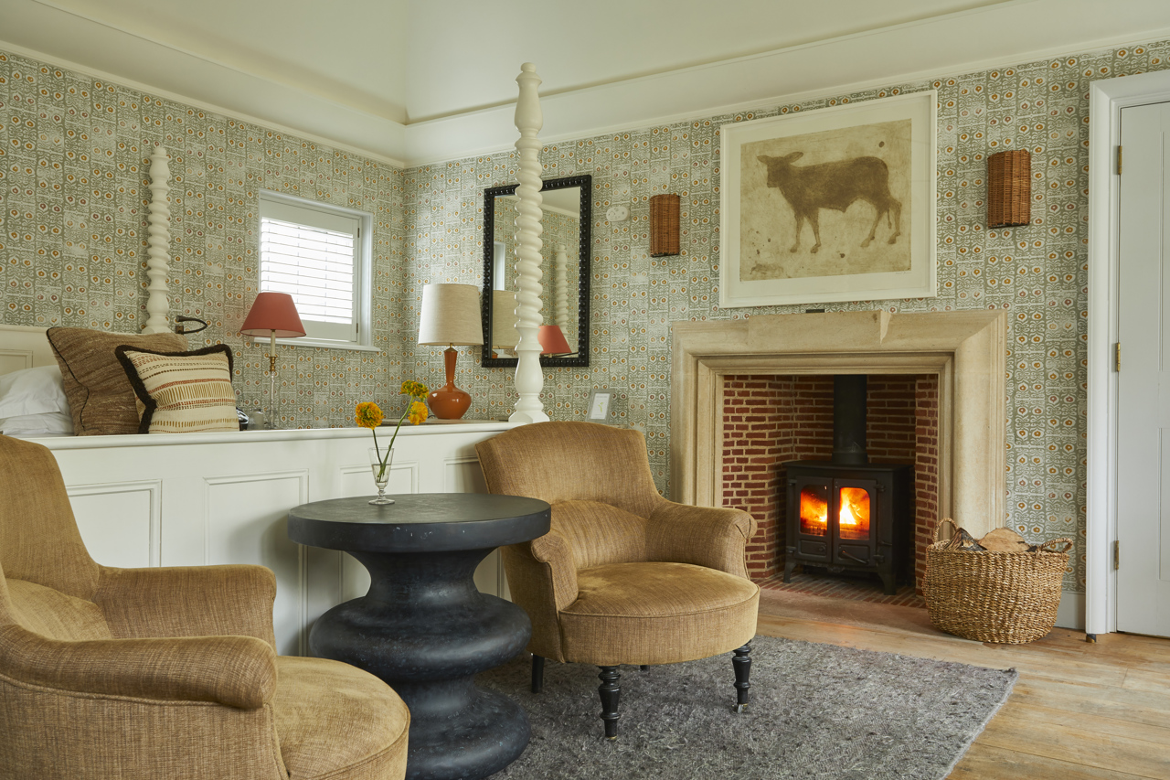 This is one of our most extensive and indulgent suites. Designed over two floors, Crescent Three has a master bedroom with a super king-sized bed and small balcony looking out over the forest and a large bathroom with a roll-top bath and monsoon shower. Downstairs is a lounge with a dining area, cosy fireplace and a private forest terrace, as well as an additional single bedroom. Designer Susie Atkinson used eclectic fabrics and pops of colour in her design.