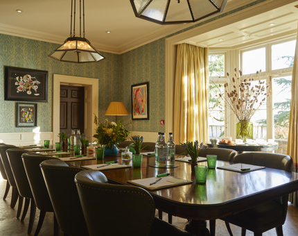Overlooking the Lime Wood gardens, this private room has a floor to ceiling large bay window with access onto the South Terrace. Perfect for private dining or board room style meetings!