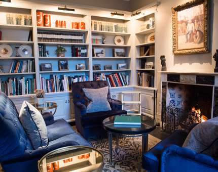 Libraries are always conducive to good thoughts. Ours is too, but it's also a comfortable and chic retreat and is particularly well-suited for small informal conversations. There is a working open fireplace and beautiful bay window looking onto the gardens beyond.