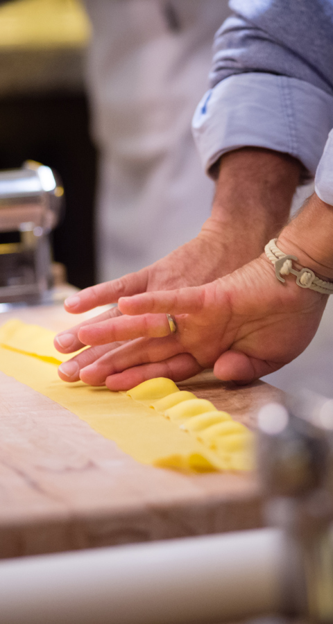 This filled pasta is from Angela’s family’s home region of Emilia Romagna. The fold is pretty simple and is a good place to start with filled pasta. The filling below is very typical of the region but you can be creative and fill these little parcels with whatever you like!