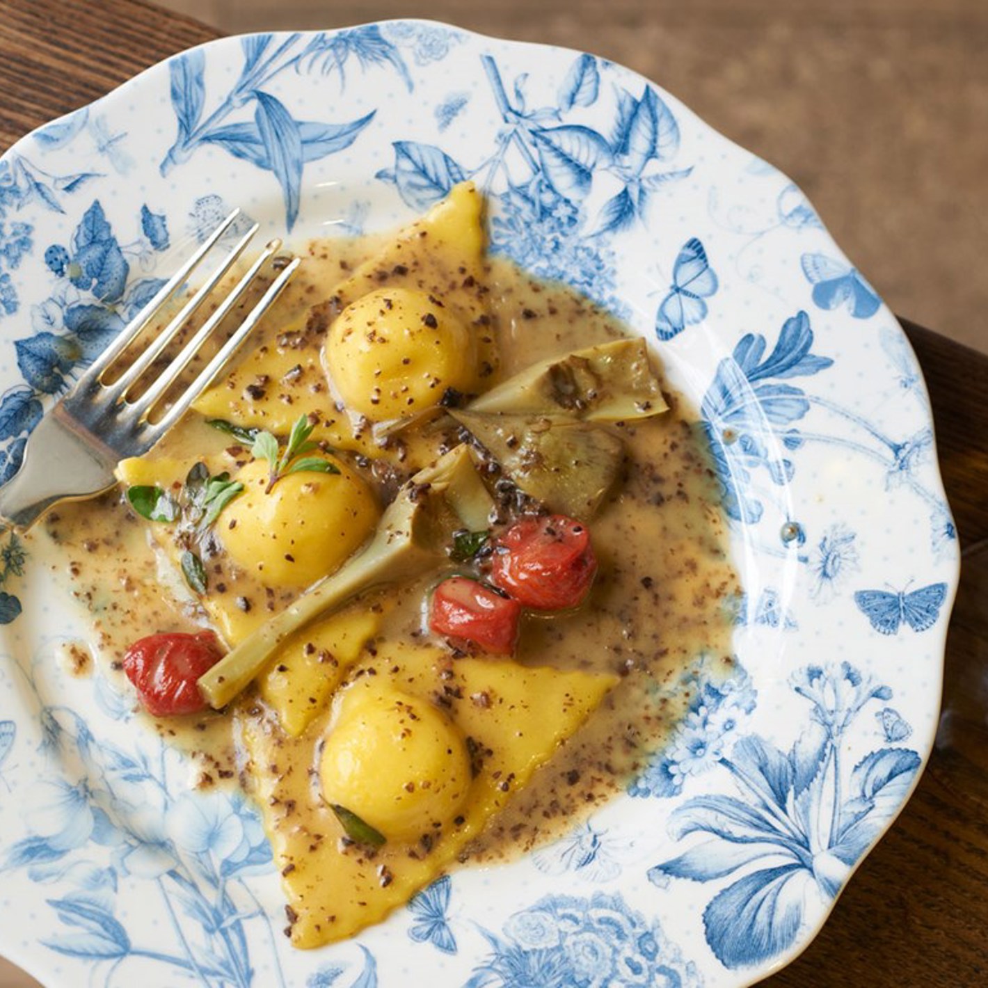 Fresh, homemade pasta has to be up there as one of the best dishes known to man, and it doesn’t get much better than Angela and Luke’s cult classic Polenta agnolotti with artichokes, tomatoes and truffle. Give it a go at home!