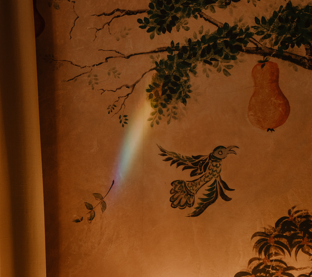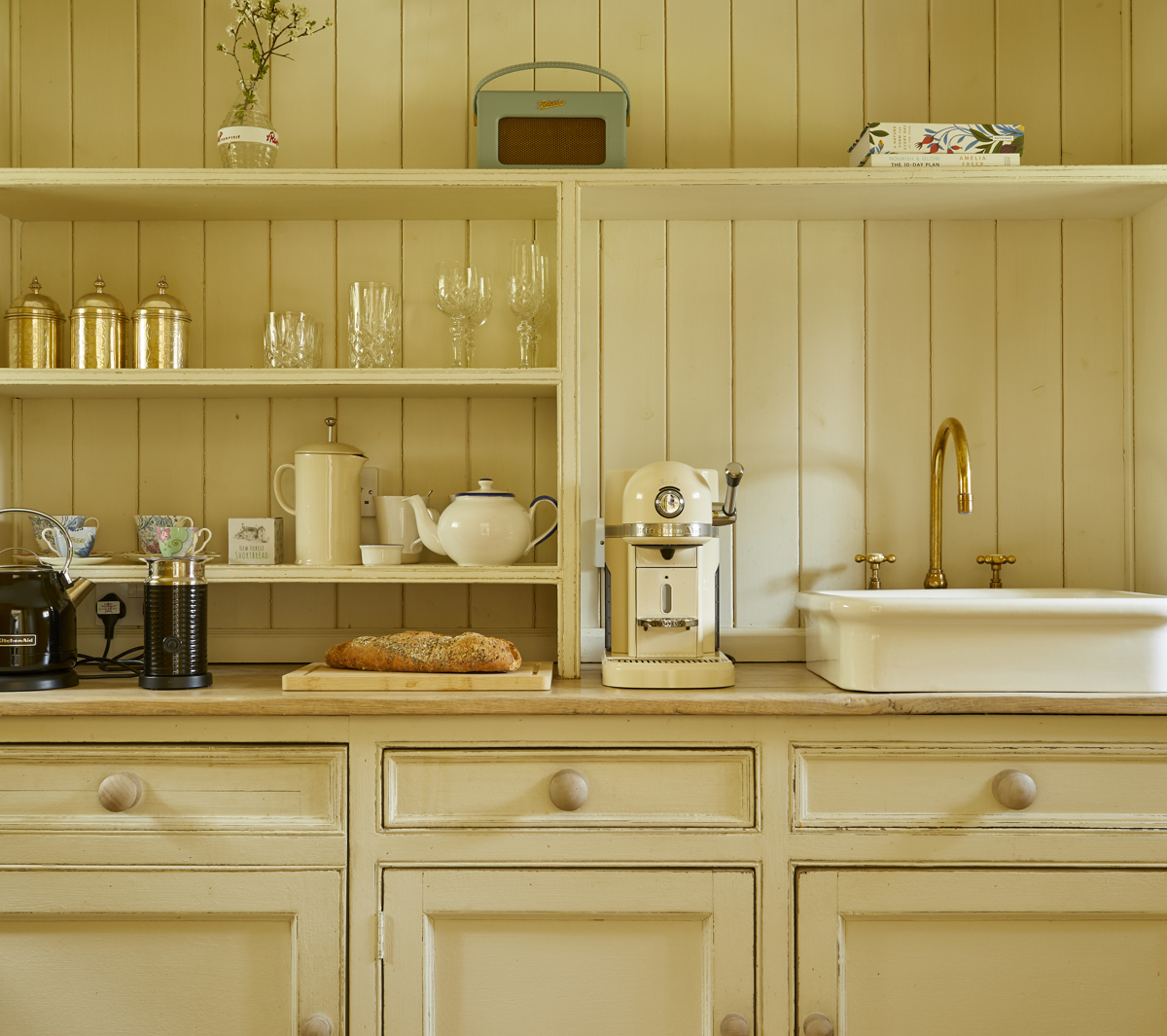 Designed exclusively with couples in mind; an elegant and romantic grownups getaway. The suite reflects the surrounding woodland through its forested wallpaper, with a soft pink ceiling creating an enchanting retreat. Downstairs consists of a spacious lounge with a private terrace and big bar larder. Upstairs, the master bedroom has a super king-size bed with forest views, an en-suite shower room and a roll top bath in the bay window.